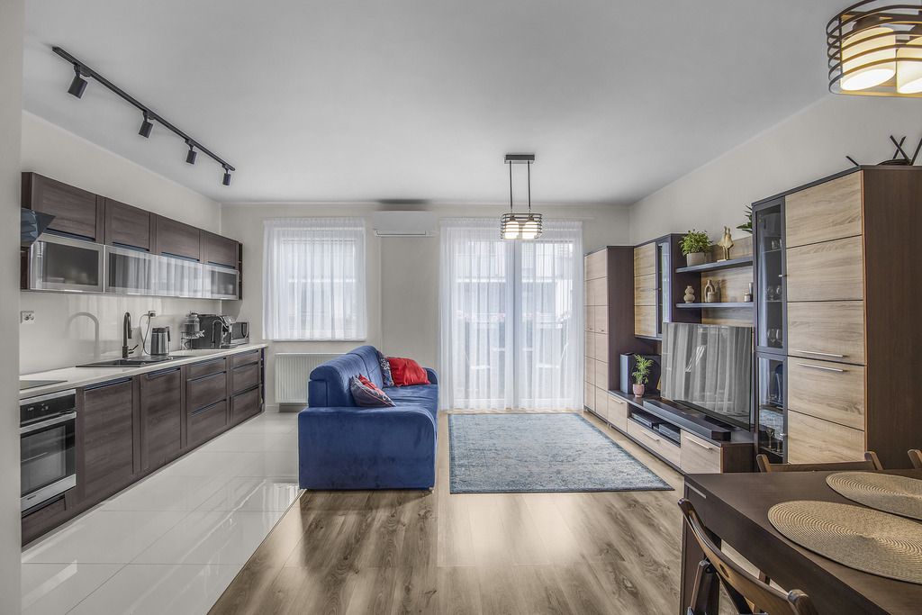 Przestronny salon z aneksem kuchennym i klimatyzacją
