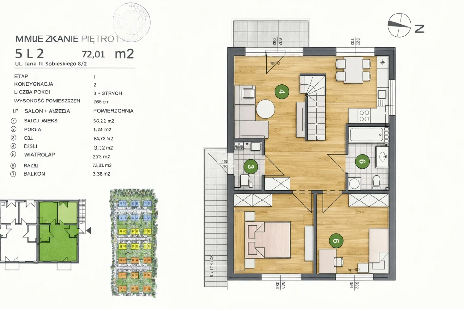 I poziom – 72 m² (całkowicie wykończony):
