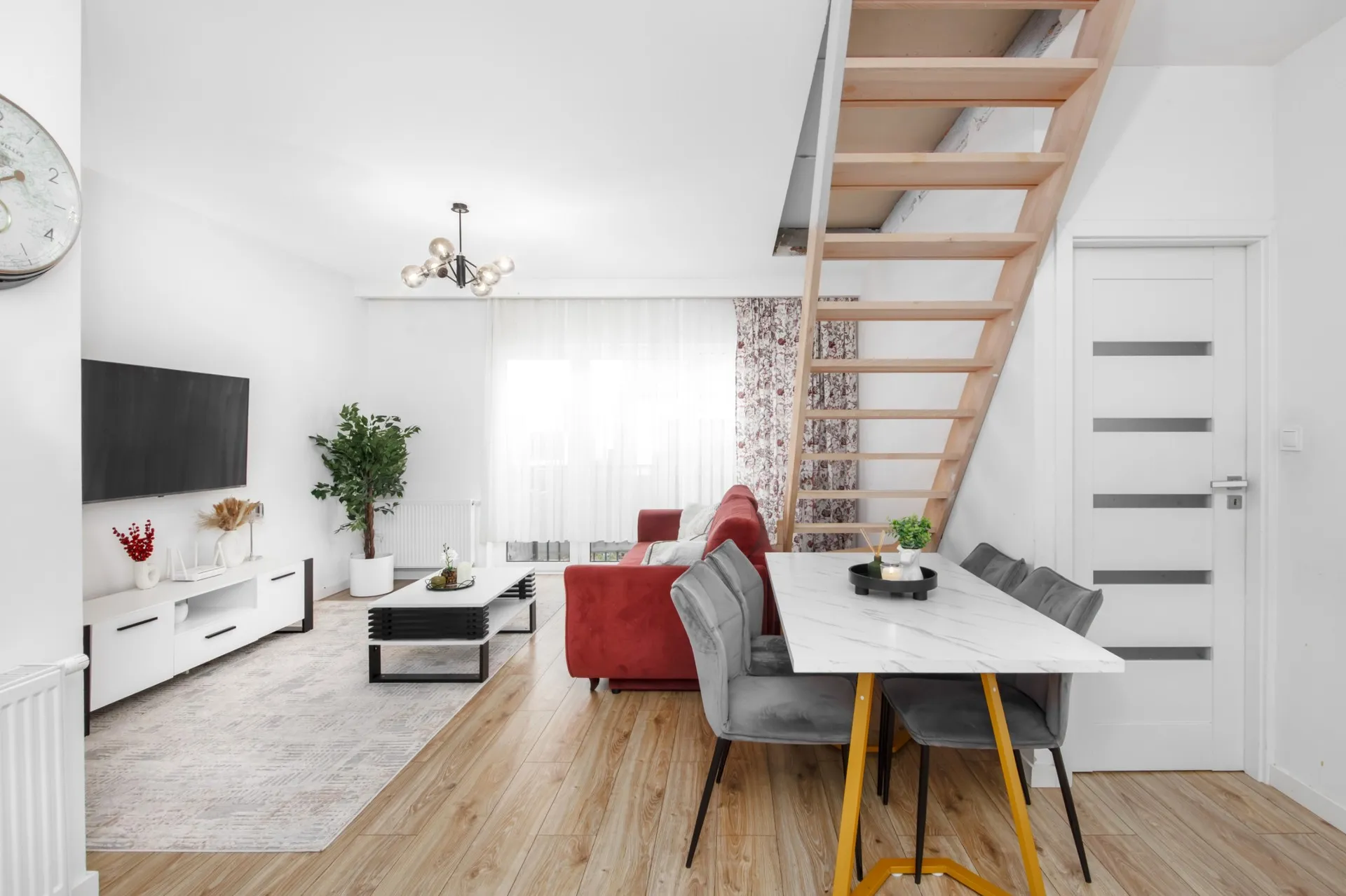 - Przestronny salon z dużymi oknami