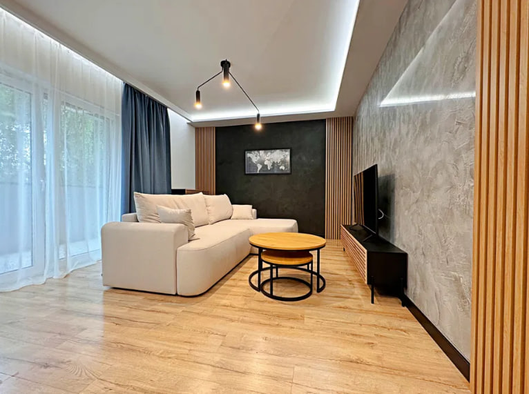 Wyposażenie: pralka, suszarka, piekarnik, mikrofala, okap, płyta indukcyjna, telewizor 55 cali, zmywarka, rolety automatyczne