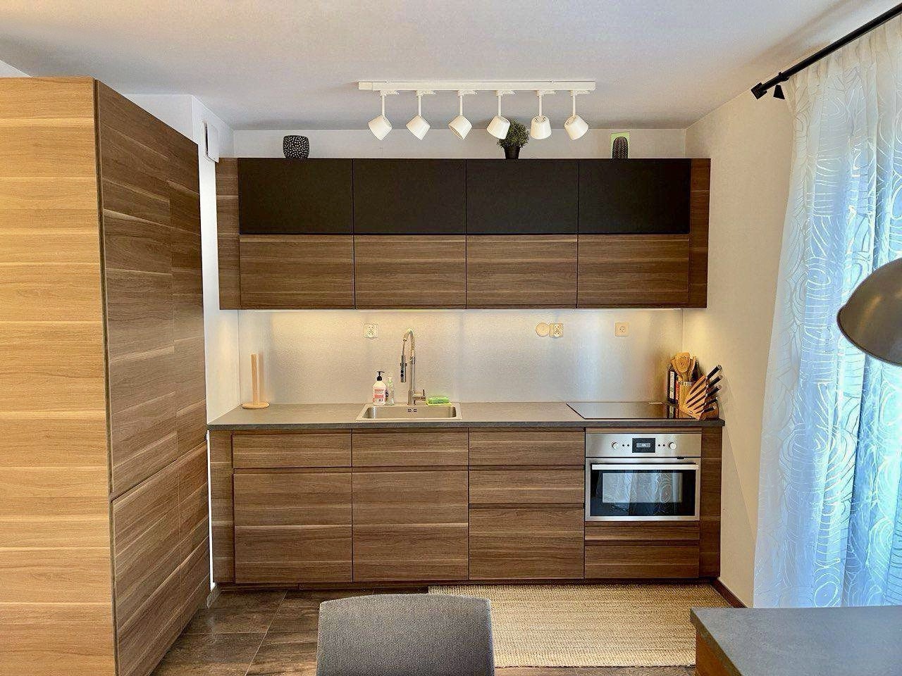 - Повністю обладнана кухня з посудомийною машиною, холодильником, духовкою, мікрохвильовою піччю та індукційною плитою.