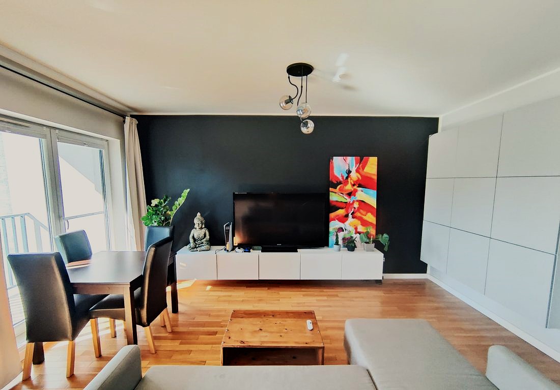 Do wynajęcia komfortowe i nowocześnie urządzone mieszkanie 3-pokojowe, położone na 3. piętrze w nowym budynku z windą. Idealne dla pary, rodziny lub osób pracujących zdalnie.